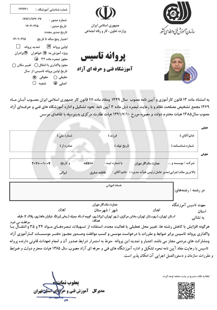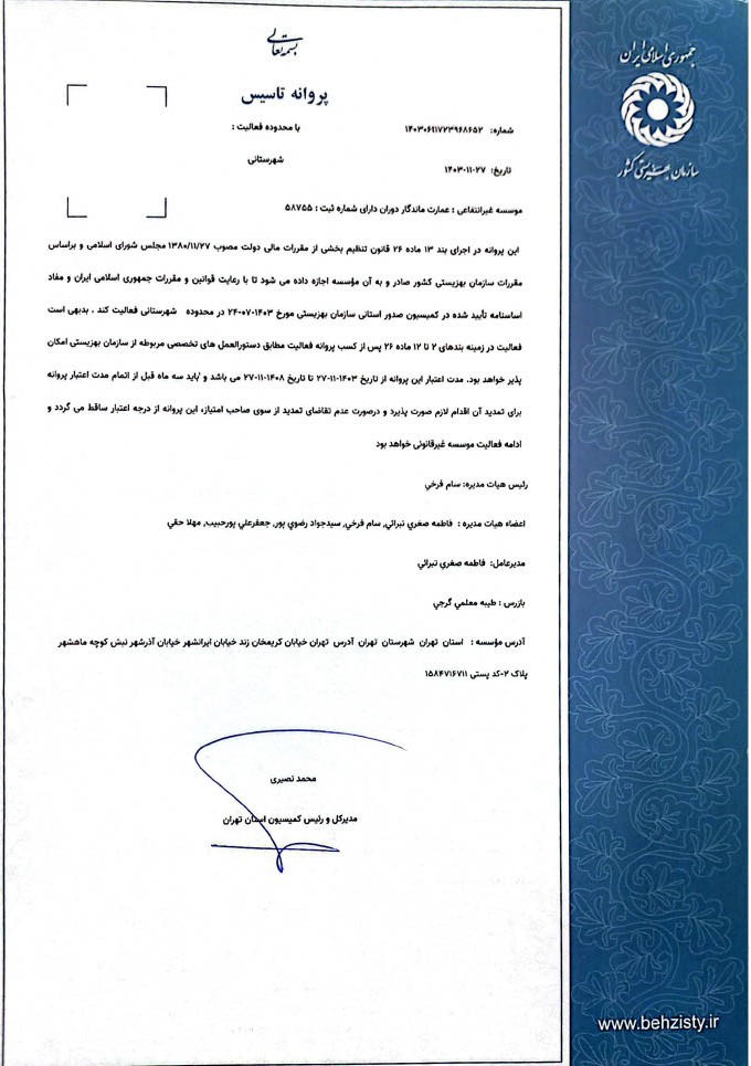 مؤسسه عمارت ماندگار دوران – بنیاد فرزانگان با مجوز و تحت نظارت سازمان بهزیستی یک موسسه غیرانتفاعی در حوزه سالمندی است که با تکیه بر ارزشهای انسانی و اجتماعی و هدف ارتقای کیفیت زندگی سالمندان، در راستای تحقق اهداف سند ملی سالمندی فعالیت میکند. این مؤسسه بهعنوان نهادی مردمنهاد، خدمات خود را در حوزههای گوناگون از جمله آموزش سالمندیاران و توانمندسازی سالمندان، خدمات حملونقل و مراقبت در منزل، ایجاد پایگاه دانش تخصصی، انتشار کتابها و بروشورهای آموزشی و همچنین برگزاری برنامههای فرهنگی و اجتماعی برای ارتقای نشاط و سلامت روان سالمندان ارائه میدهد.